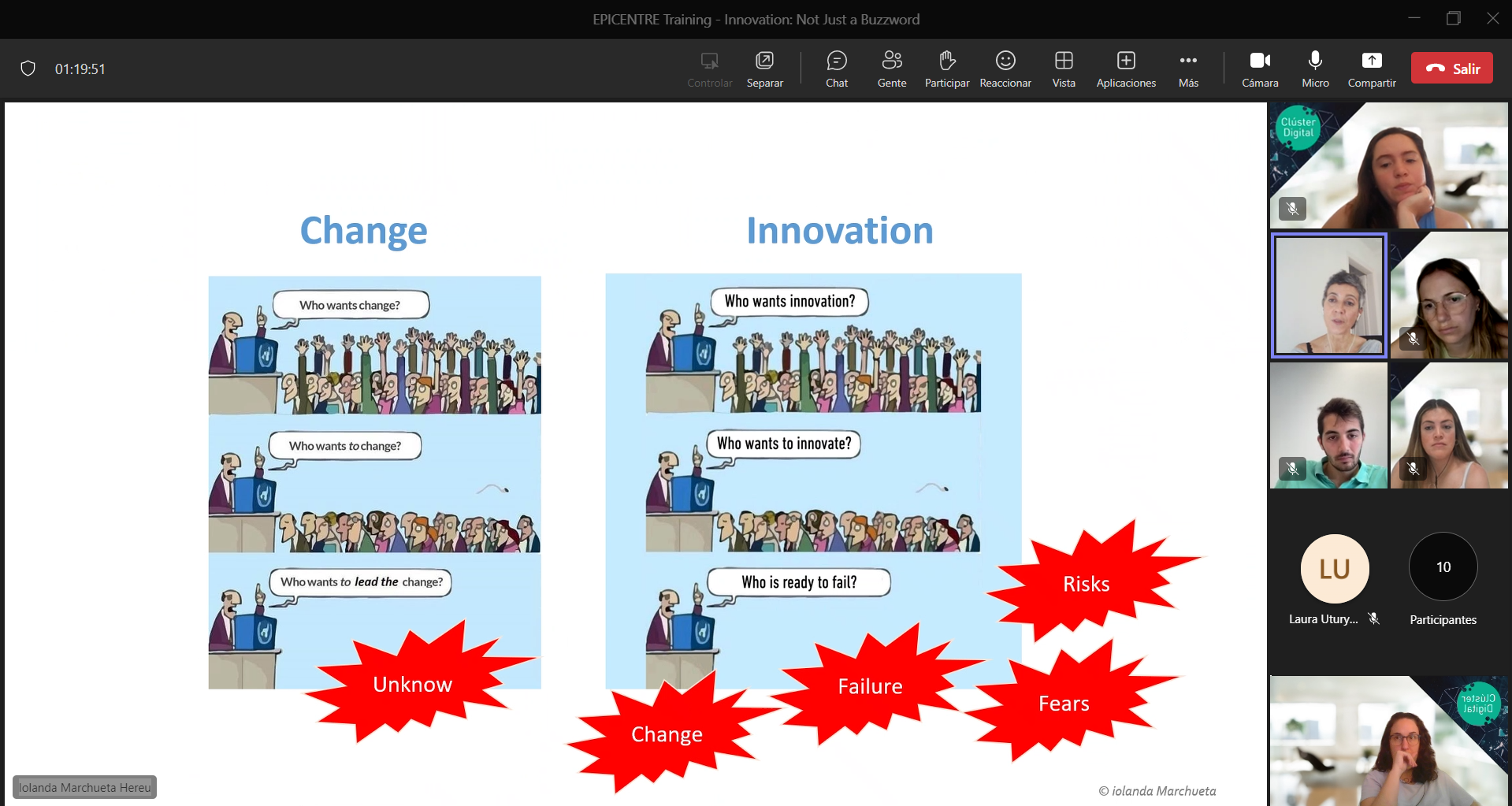 On June 26th, the online training session "Innovation: Not Just a Buzzword" took place as part of the EPICENTRE project. Organized by Clúster Digital de Catalunya and WORSLEY Acceleration Services, this training is a significant step forward in our collaborative efforts within the Epicentre Eurocluster project.