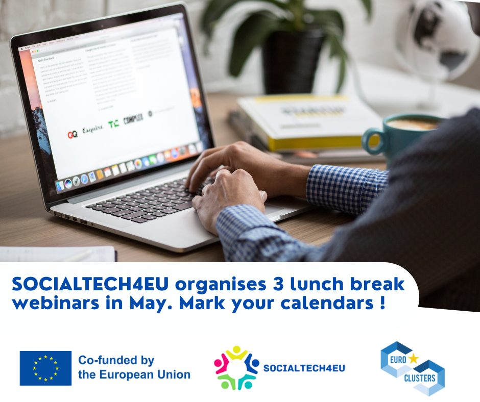 During May, the Eurocluster SOCIALTECH4EU organises three lunch break webinars that are open to clusters interested in the social economy and entrepreneurship. Register now to join the events.