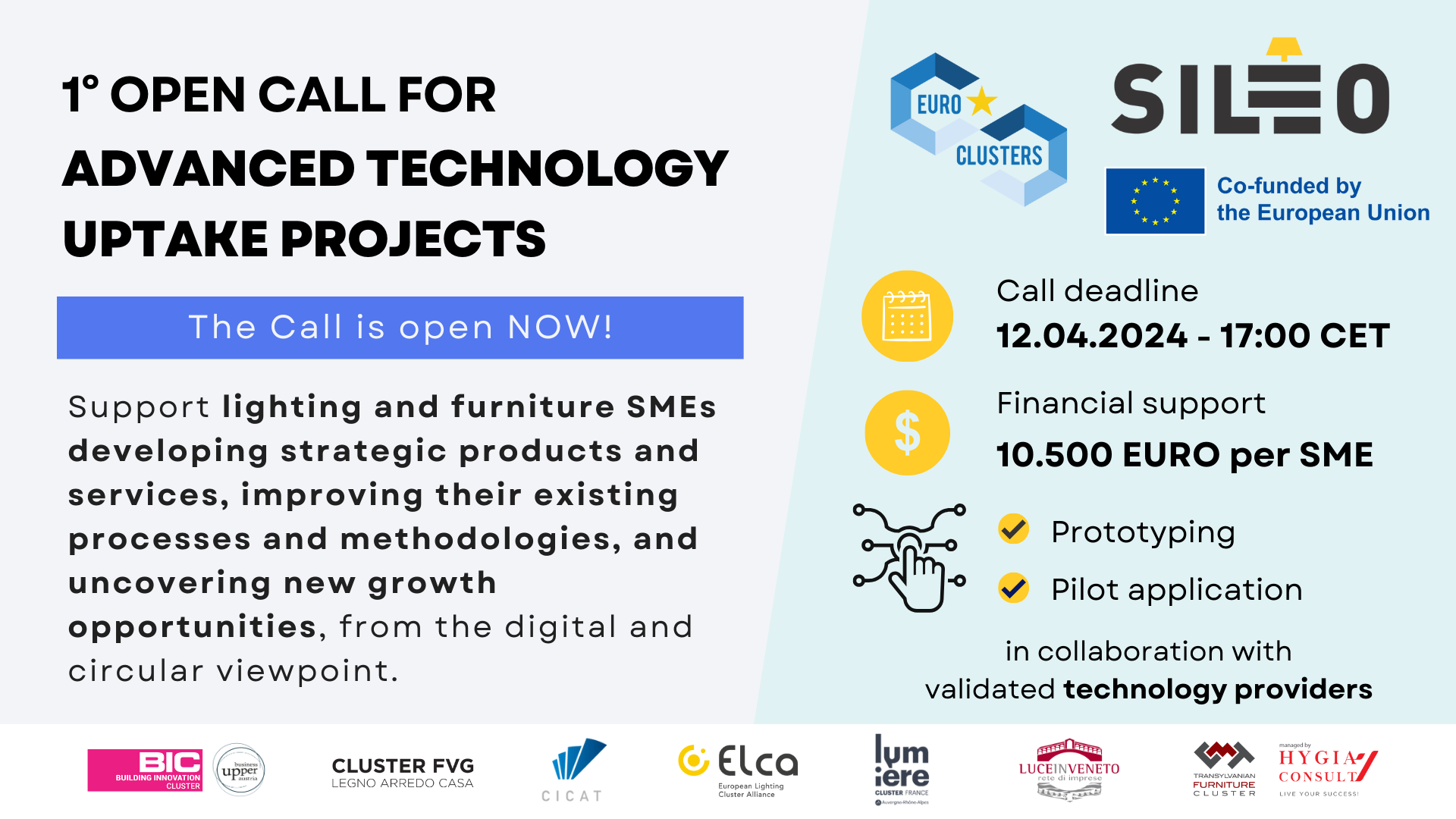 Attention all furniture and lighting SMEs: the deadline for the SILEO 1st Call for Advanced Technology Uptake Projects is on 12.04.2024 at 17:00 CEST!