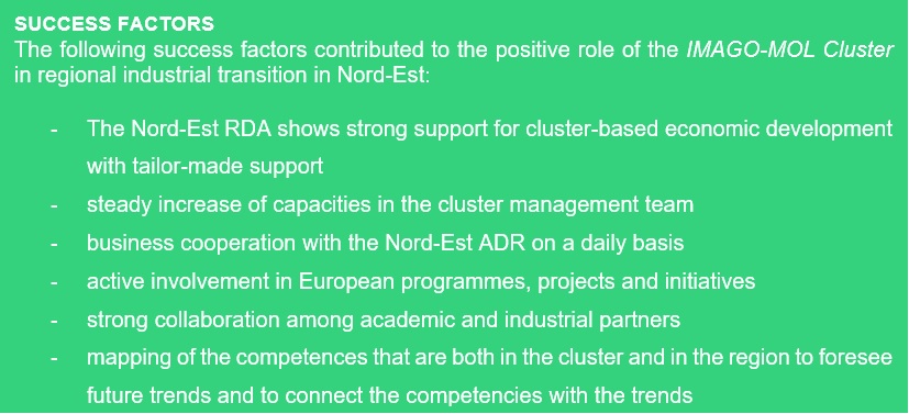 Moreover, the previous phase of the Regional Operational Programme did not provide opportunities for the direct funding of clusters. Due to input from IMAGO-MOL and other regional clusters, direct funding of regional clusters is now an integral part of the current phase (2021 – 2027). This success will further strengthen the institutional capacities of Nord-Est’s clusters and will ultimately lead to an extended service portfolio for the regional stakeholders.
