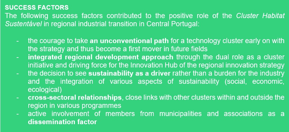 The Habitat Cluster is a compelling example of successful cluster activities despite resource constraints. This success is, in no small part, due to its close ties with the University of Aveiro and the cluster's strong international and cross-sectoral orientation.