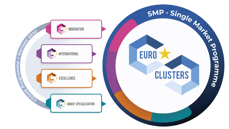 The Euroclusters build upon European Commission’s experience with the 4 strands of “European Cluster Partnerships”, supported under Horizon 2020 (Innovation) and COSME (Internationalisation, Excellence and Smart Specialisation Investments).
